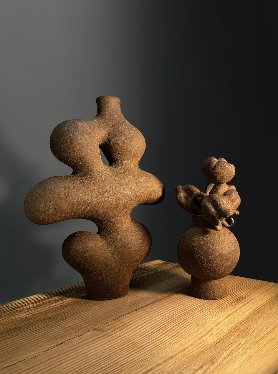 Chih Han Chang, a Taiwanese ceramic artist and product designer. With a background in industrial design, he is drawn to simplifying complex forms into quiet, essential shapes. In ceramics, this instinct becomes tactile—he builds slowly, letting form emerge through rhythm and intuition rather than precision or replication.His work is deeply influenced by East Asian aesthetics, especially bonsai pine trees and floral compositions. Like a branch twisted over time or a flower blooming for no occasion, each piece is hand-built, layer by layer, never identical. The forms grow from clay as if from soil—organic, asymmetrical, and unapologetically themselves.張智涵,來自台灣的陶藝創作者,具有產品設計背景,擅長將複雜的造型簡化成安靜、精煉的形態。在陶藝中,將這樣的設計直覺轉化變得更具觸感—以緩慢的手捏節奏一步步構築作品,讓形體自然生長。創作深受東方美學啟發,特別是盆景松的姿態與花藝的靜謐。就像被時間扭轉的枝幹,或是沒有理由而綻放的花,每件作品都是一層層手工堆疊而成,無法複製,像是從泥土中長出來的形體——有機、不對稱,並堅持做自己。